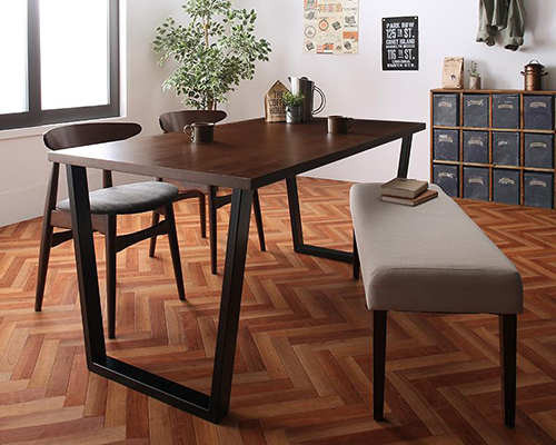 最近のダイニングテーブルセットには、チェアがベンチのタイプが増えています。